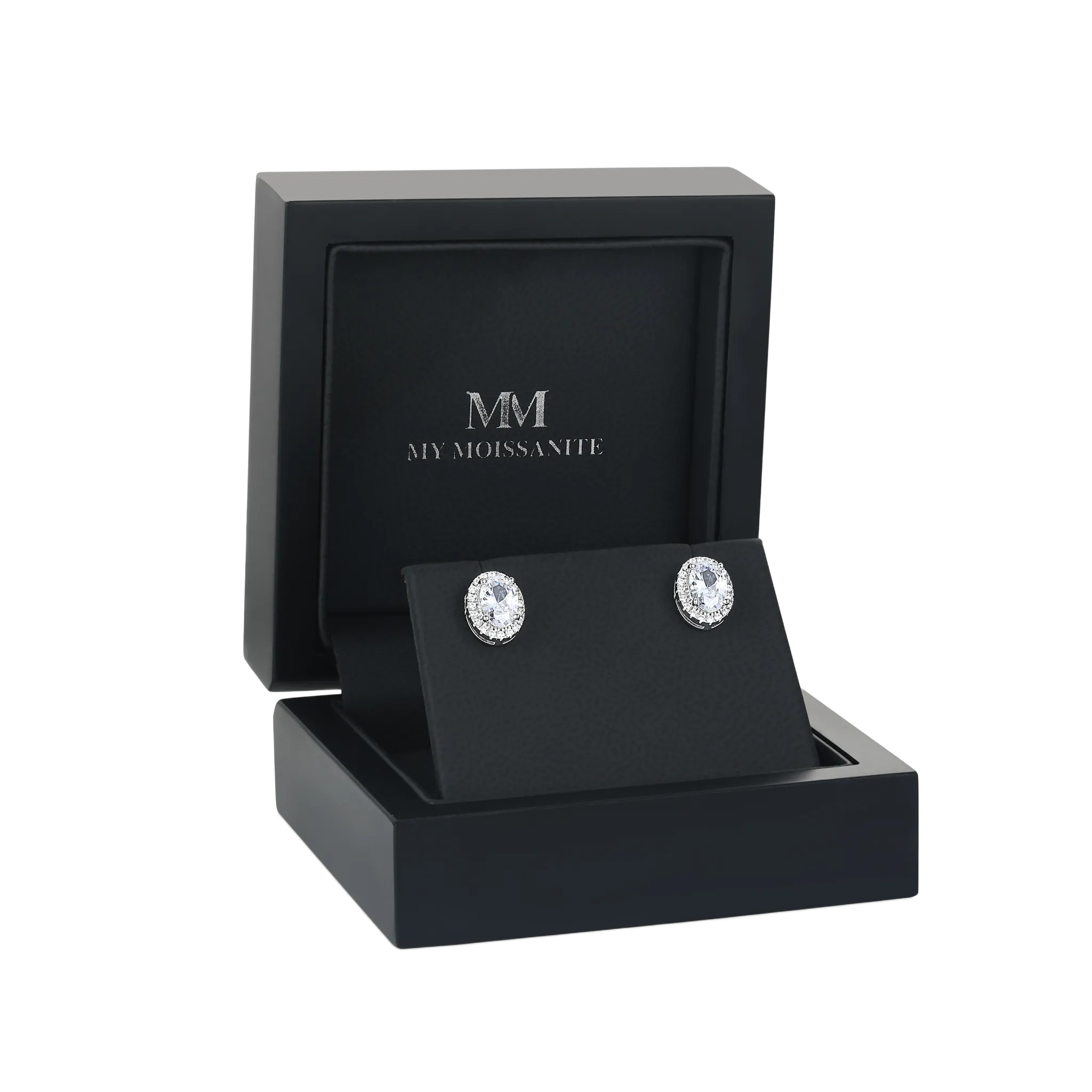 Podkreśl swoją kolekcję biżuterii tymi wyjątkowymi kolczykami. Wyposażone są w świecące kamienie moissanite w kształcie owalu, umieszczone w konfiguracji halo, co zapewnia promienny błysk przy każdym ruchu. Z całkowitą wagą karatów 2.2, te kolczyki oferują urzekający urok. Są dostarczane w pięknym drewnianym pudełku na prezent, co czyni je specjalnym podarunkiem na każdą okazję.