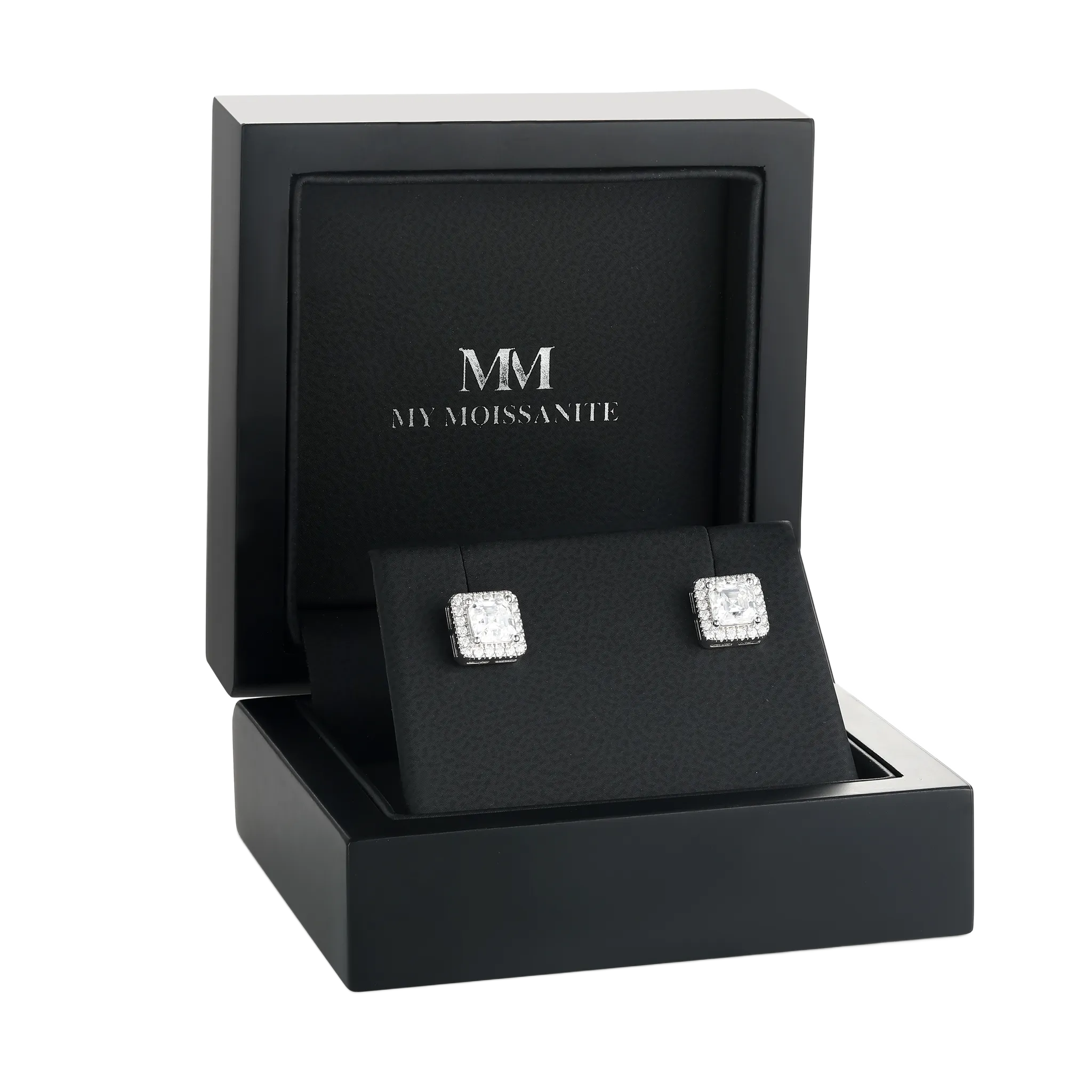 Te kolczyki z moissanitem w szlifie asscher są doskonałym dodatkiem do każdej stylizacji. Przepiękne kamienie moissaniu w szlifie asscher są otoczone ustawieniem halo z 40 błyszczących kamieni bocznych, co dodaje dodatkowego blasku już olśniewającemu kamieniowi centralnemu. Z średnicą 5*5 mm i wagą 1.44 karata, te kolczyki na pewno się wyróżnią. Są wykonane z 14K lub 18K złota, srebra lub platyny, co nadaje elegancki i nowoczesny wygląd oprawie. Te ponadczasowe kolczyki są wynikiem doskonałego rzemiosła i są odpowiednie na każdą okazję.