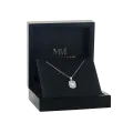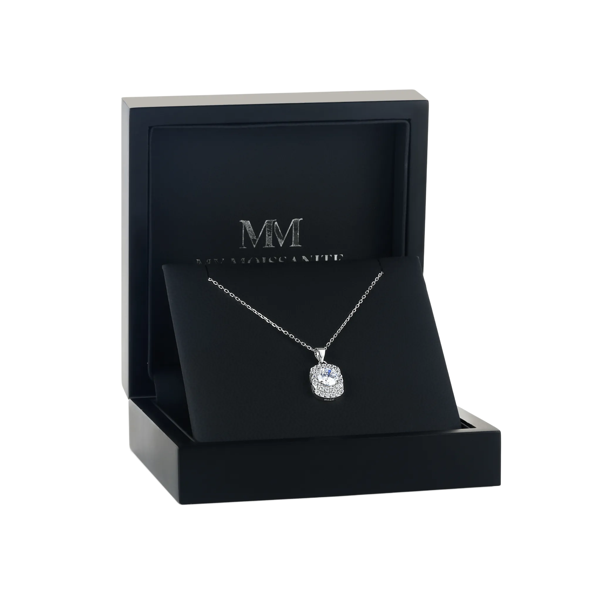 Memento uchwytuje istotę wyrafinowania ze swoim designem Pavé Halo, otaczającym fascynujący centralny moissanit o wadze 1 karata. Skomplikowana aranżacja obejmuje 28 bocznych kamieni o średnicy 1,5 mm każdy, starannie umieszczonych, aby zwiększyć centralny blask, uzupełniona o elegancki naszyjnik o długości 40+5 cm, zapewniający idealny kształt. To dzieło zaprojektowane nie tylko do ozdabiania, ale także do robienia wrażenia swoimi wymiarami 13 mm na 10 mm, zapewniając znaczącą obecność, która jest zarówno odczuwalna, jak i widoczna.