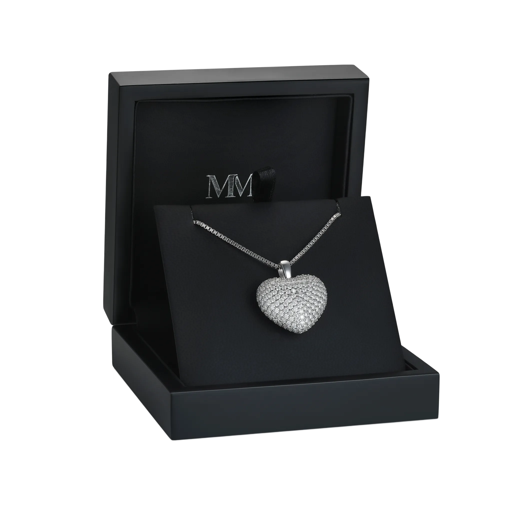 Serenade to wisior w kształcie serca, który uosabia miłość i uczucie dzięki lśniącym kamieniom moissanit. Oprawa pavé sprawia, że każdy kamień pięknie łapie i odbija światło, podkreślając blask wisiora. Gładka, polerowana zawieszka doskonale komponuje się z całością, a delikatnie zaokrąglona sylwetka dodaje elegancji. Uzupełniony o skomplikowane krzywizny, ten wisior oferuje niesamowitą przestrzenność i wizualne zainteresowanie, czyniąc go olśniewającym dodatkiem na każdą okazję. Ważne: Wisiorek jest sprzedawany bez łańcuszka. Uzupełnij go, dodając nasz łańcuszek ogniwkowy lub łańcuszek wenecki.