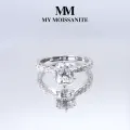 Lumiere to pierścionek z moissanitem w szlifie radiant osadzonym w sześciu łapkach, uzupełniony mniejszymi okrągłymi moissanitami osadzonymi w kanale, w pierścionku o szerokości 2,5 mm. Wyróżnia się szczegółową oprawą w krapach, oferując dekoracyjny profil boczny. Podobny do modelu Yuliana, ale z kamieniem centralnym w kształcie radiant, centralny moissanit jest akcentowany różnymi mniejszymi kamieniami. Idealny dla osób poszukujących unikalnego moissanitowego pierścionka zaręczynowego.